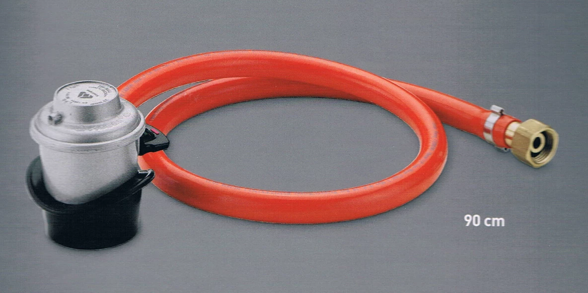 Este es el Kit oficial de tubo y regulador para poder usar la barbacoa Weber Q 1000 y la Weber Q 1200 con las botellas de gas recargables grande tipo Repsol, Campsa, Cepsa, etc, en lugar de los cartuchos de gas descartables.