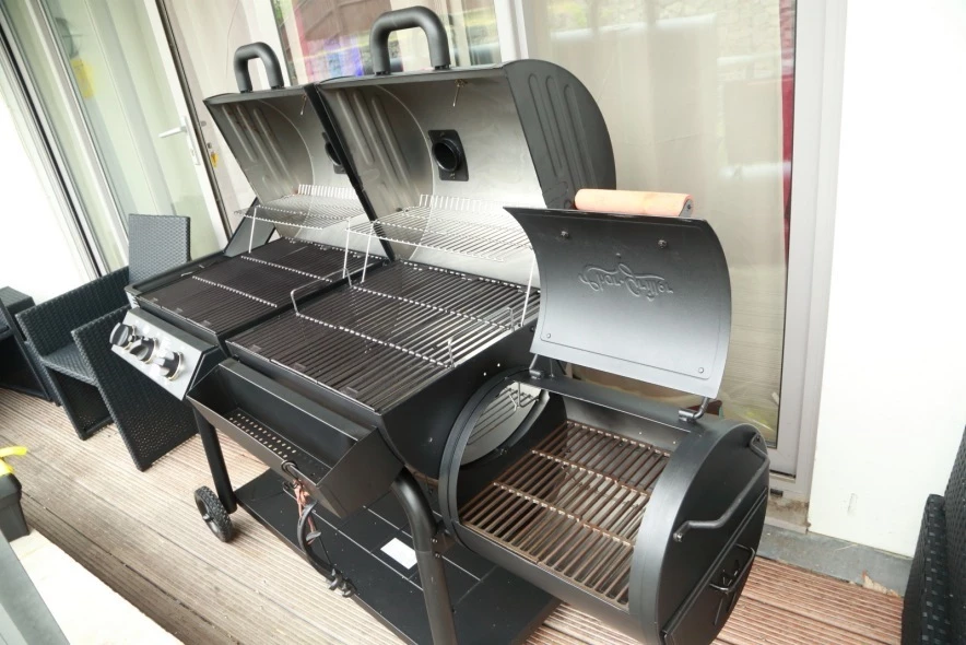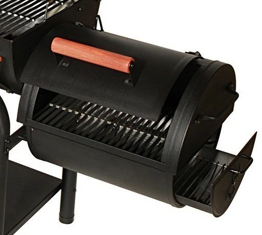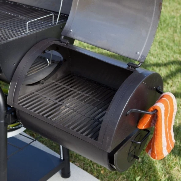 Este aparato es un 2 en 1, por un lado es una robusta barbacoa portátil que la podemos usar con carbón y leña y por otro lado es un práctico ahumador que se acopla fácilmente sobre el lateral de cualquier barbacoa Char-Griller.