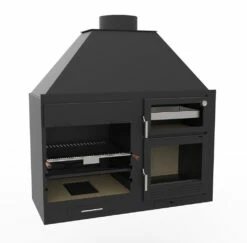 Fabricada enteramente en Acero al carbono de 4 mm. y con puertas de fundición. Además incluye un soporte de paellera con una capacidad de hasta 60 cm. de diámetro.