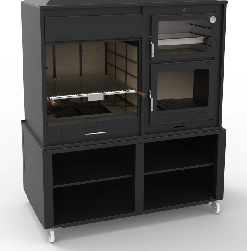 – Parrilla de cocción de Acero Inoxidable tipo Argentina (con varillas en forma de V) y recoge-grasas.