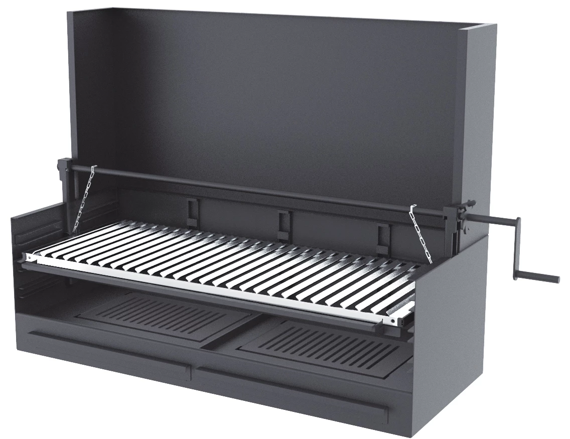 Barbacoa Carbón Y Leña 100 Cm Con Paravaientos Y Elevador