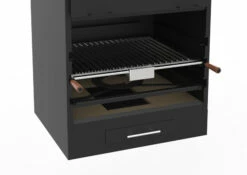 Una bandeja de comida y una tabla de corte de Bambú han sido hábilmente integradas en el diseño, dejando espacio para transportar también carbón fresco.