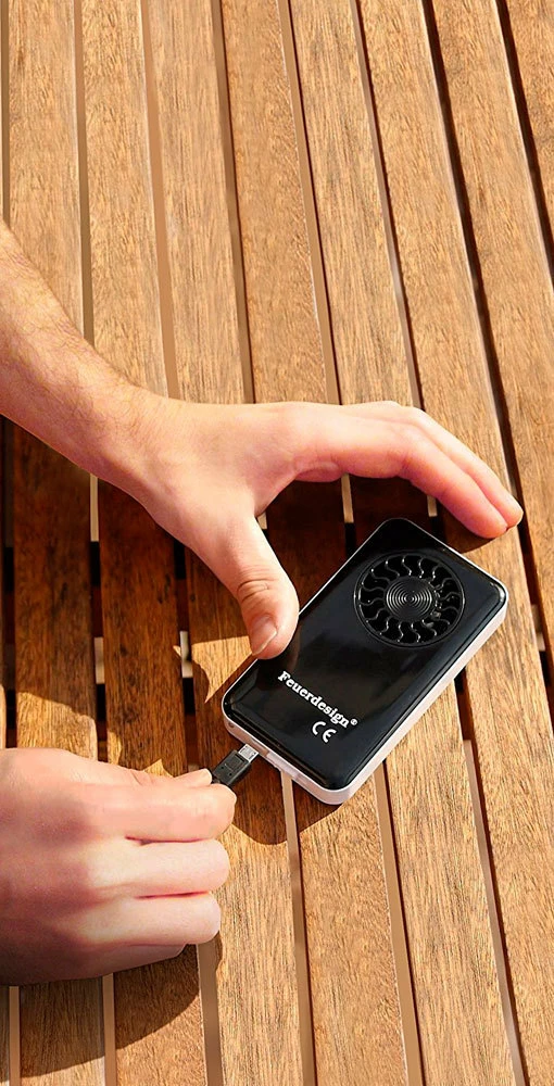 El ventilador Feuerdesign tiene más de 4 horas de autonomía y se recarga muy fácilmente con el cable USB incluido. Simplemente enchúfalo y empieza a cocinar.