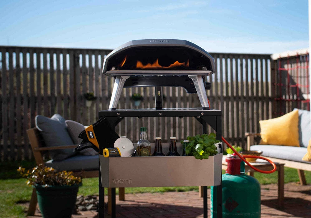 Combine su Mesa Modular Ooni con sus Cajas Utilitarias Ooni: Las Cajas Utilitarias Medianas encajan en la parte delantera o trasera de la Mesa Modular Mediana.