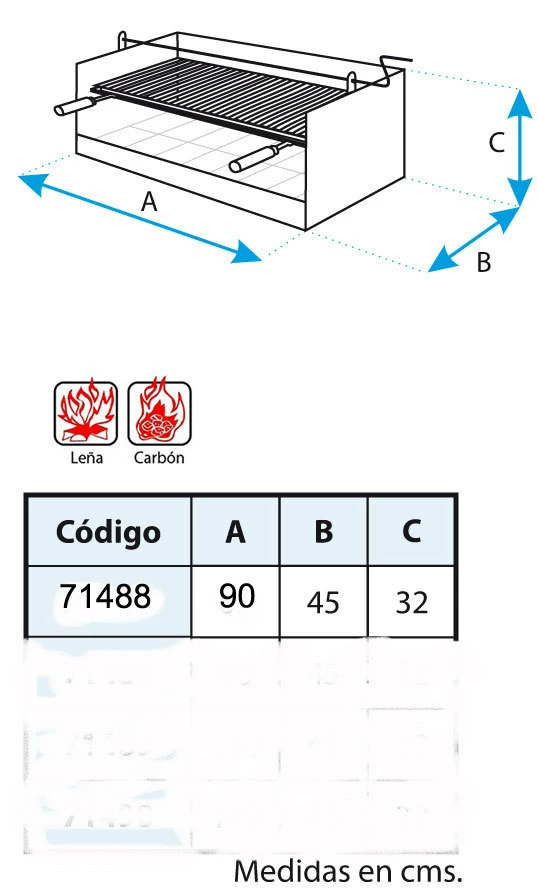 – Combustible recomendado: Leña, Carbón y Briquetas.