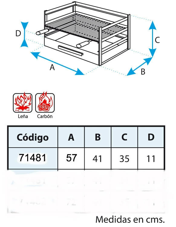 – Combustible recomendado: Leña, Carbón y Briquetas.