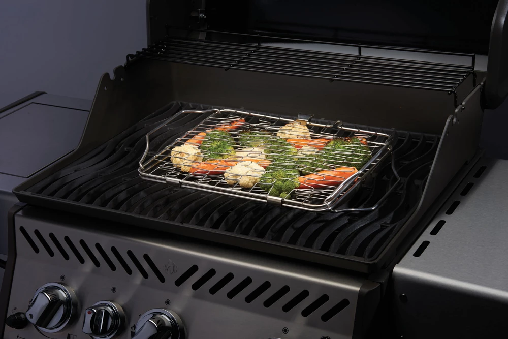 El Acero Inoxidable duradero de la cesta flexible para barbacoa Napoleon no sólo calienta de forma uniforme, sino que también es fácil de limpiar; basta con meterla en el lavavajillas para que esté lista para su próxima creación a la parrilla.
