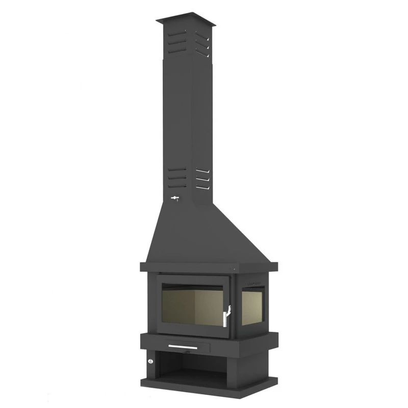 Diseño clásico con leñero , en el que se ha conseguido un gran aprovechamiento de su poder calorífico.