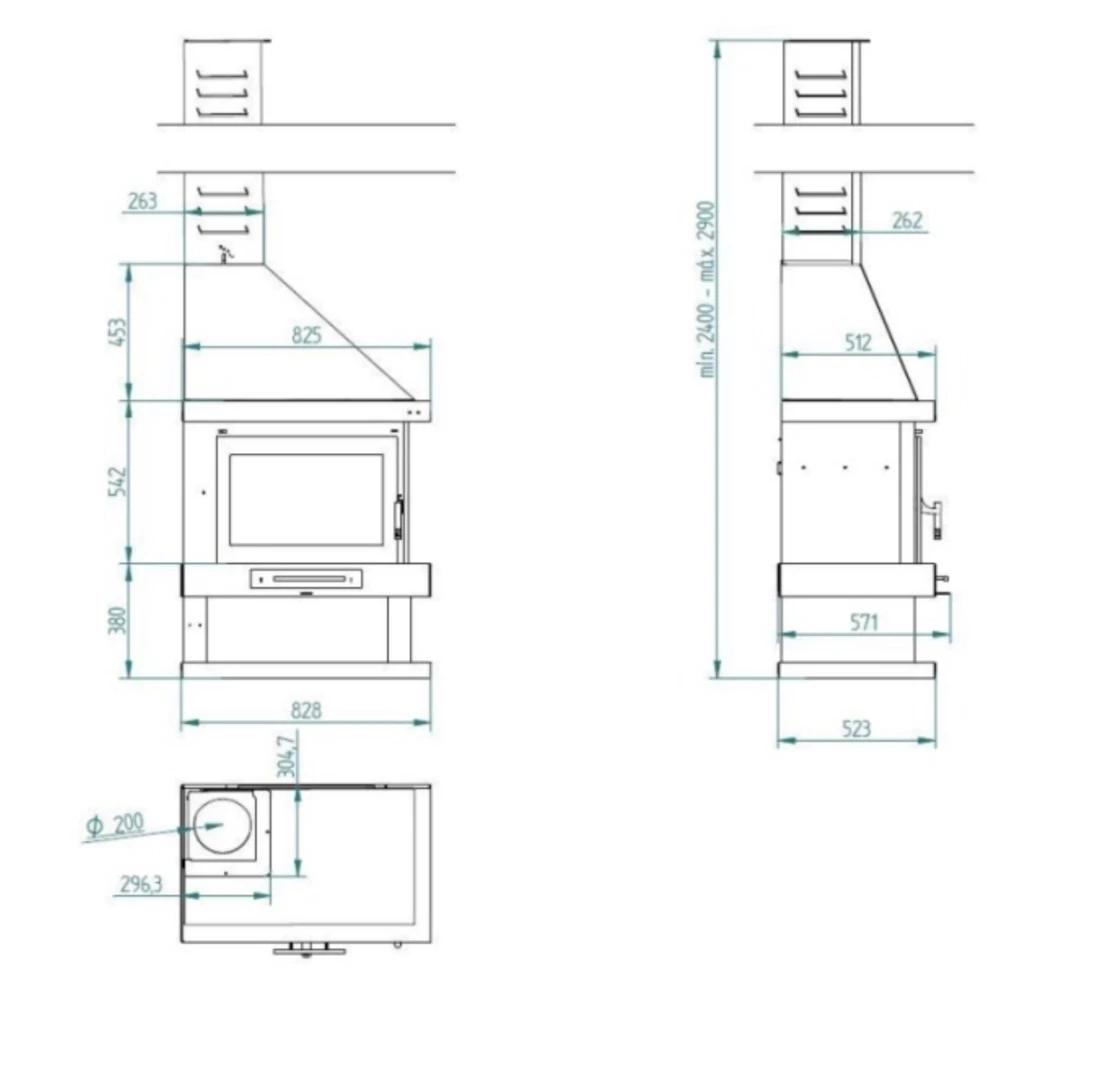 – Boca entrada de leña: 54.5 x 29.5 x 35 cm.