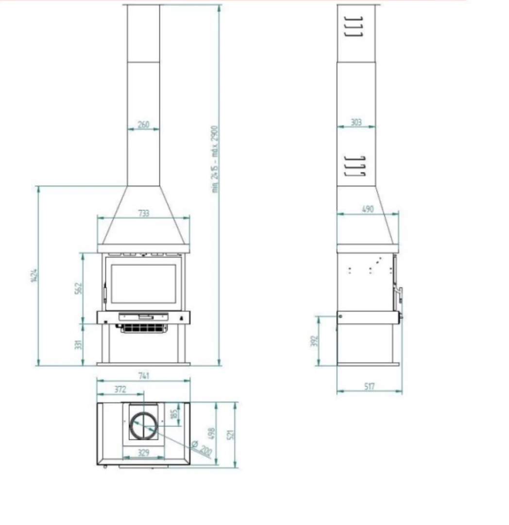 – Boca entrada de leña: 54.5 x 29.5 x 35 cm