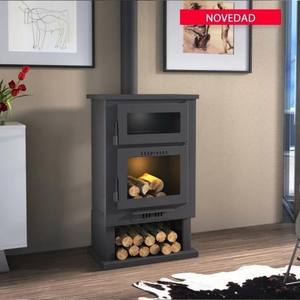 Un modelo compacto con excelentes características, incluyendo una doble cámara, compartimiento de almacenamiento de madera y horno.
