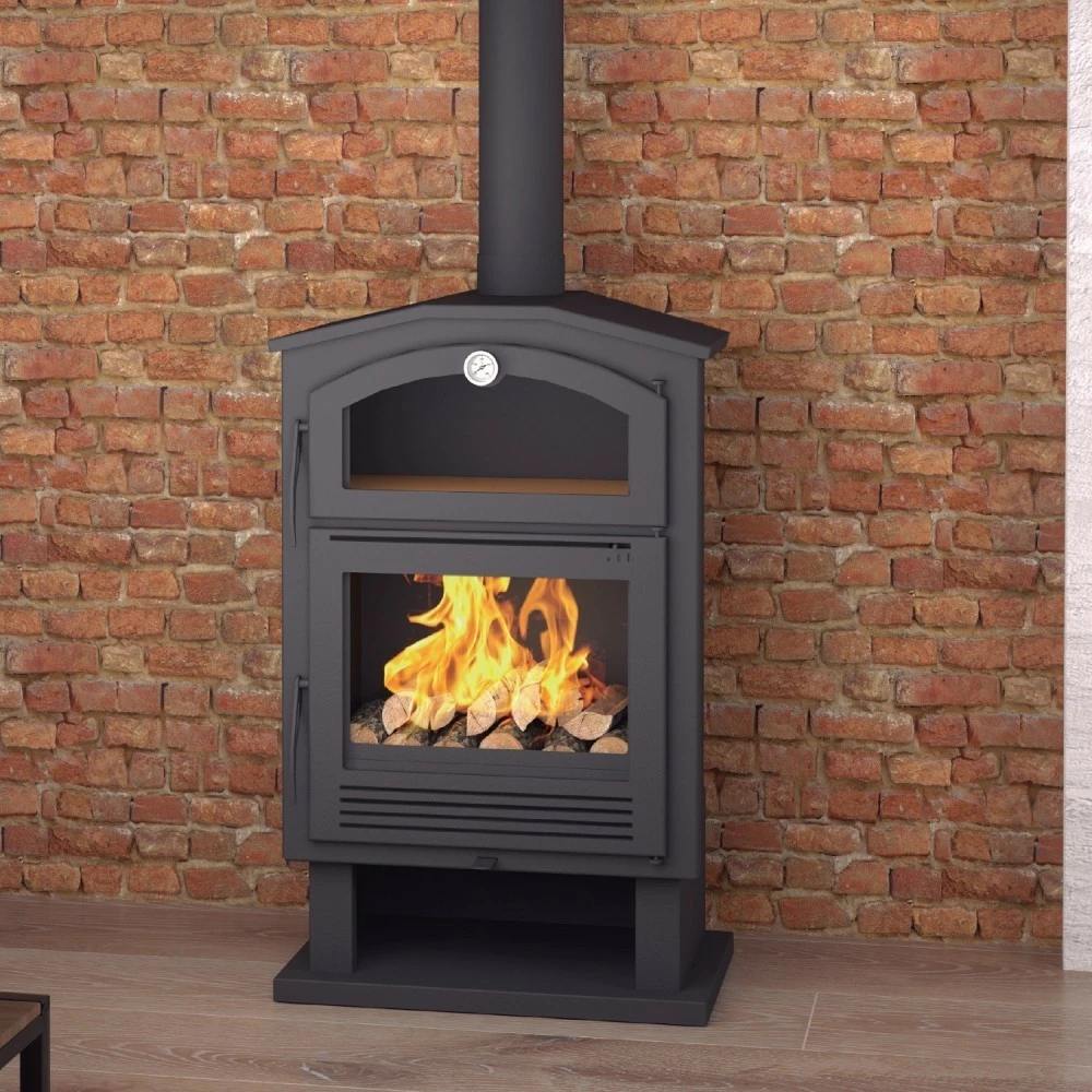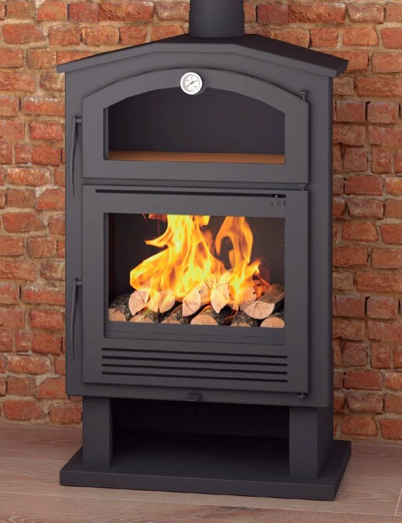Un modelo compacto con excelentes características, incluyendo una doble cámara, compartimiento de almacenamiento de madera y horno.