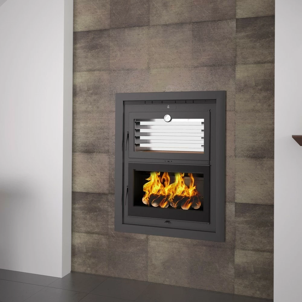Diseño clásico, en el que se ha conseguido un gran aprovechamiento de su poder calorífico. Gracias a su hogar, recubierto de ladrillo refractario y su doble cuerpo que realiza la función de un convector natural de aire.