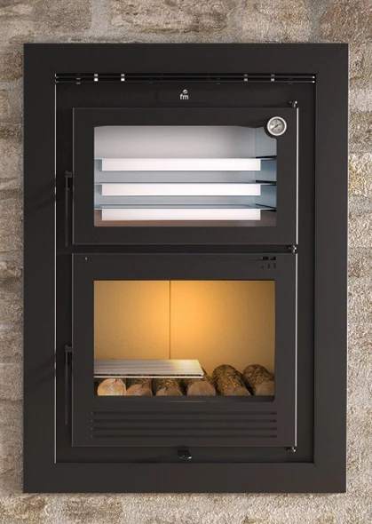 Excelente horno insertable de leña, del que se ha conseguido un gran aprovechamiento de su poder calorífico, haciendo muy confortable cualquier estancia en su hogar.