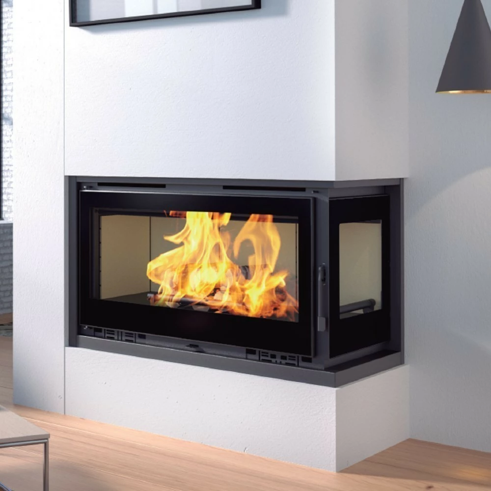 Magnífico insertable de leña, ideal para cualquier tipo de vivienda. Con una baja emisión de CO2 y un rendimiento superior al 70%, conseguimos un producto de alta calidad. Disponible también para el lado izquierdo.