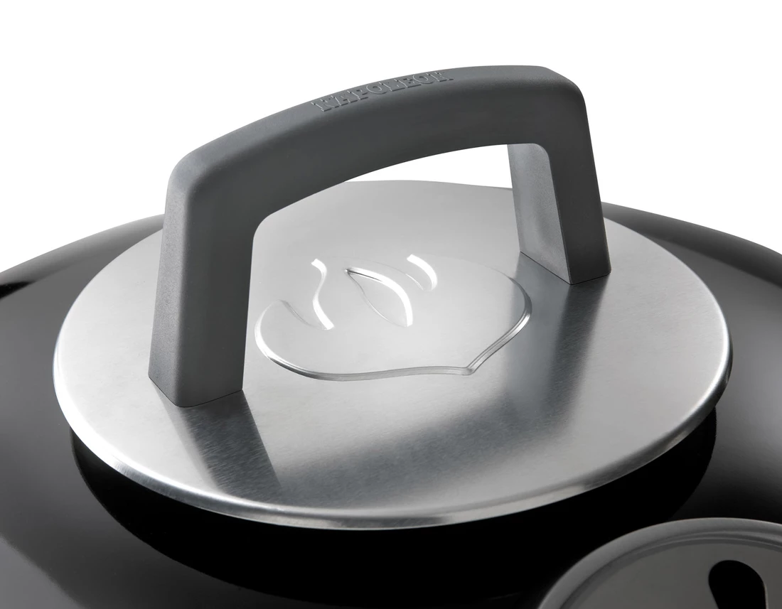 La tapa cuenta con un colgador integrado y un asa de tacto frío para mantener las manos alejadas del calor mientras se asa.