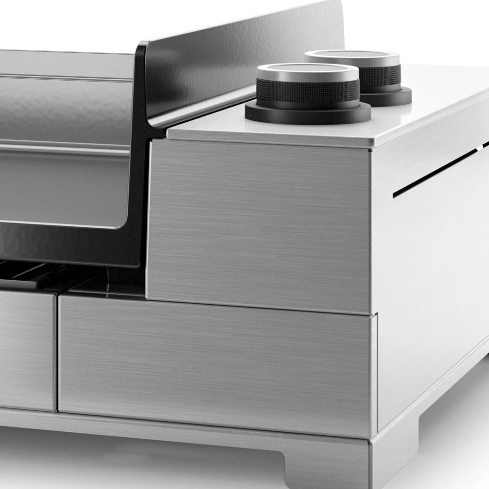 La serie Premium se caracteriza por su diseño futurista y desigual con el panel de control situado en el lado derecho, su cajón recoge grasas oculto y su gran potencia de cocción.