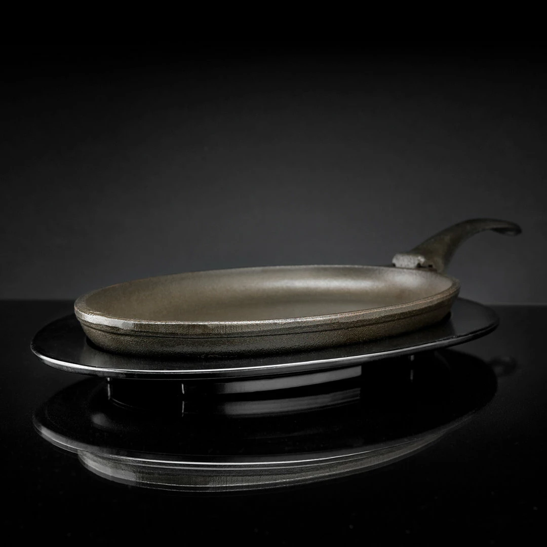 La Sartén Profesional de Hierro Fundido es fácil de sazonar, sólo hay que lavarla, aplicar una fina capa de grasa o aceite y meterla en un horno precalentado a 180º C durante una hora. Esto asegura que la sartén de hierro fundido profesional tenga un revestimiento antiadherente que durará años de uso para cosas como las fajitas. Al igual que en un restaurante, saque sus fajitas tostadas directamente de la barbacoa y llévelas a la mesa, para una cena familiar espectacular.