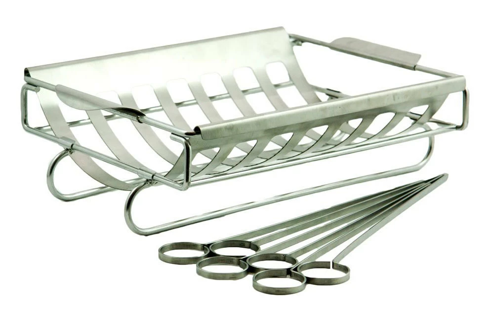 Soporte de Asado con 6 Brochetas para barbacoa 2 en 1.