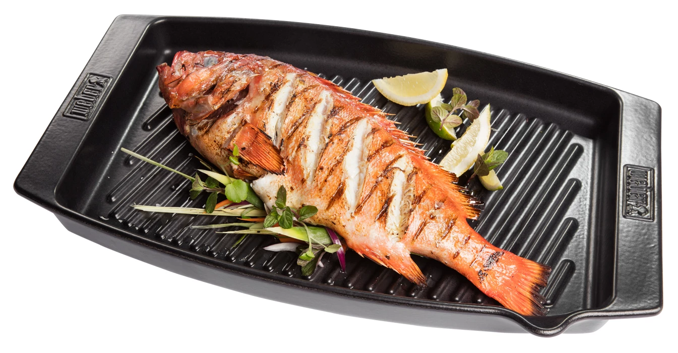 – Ideal para preparar y servir pescados, carnes y verduras, con relieve en el fondo para marcar los alimentos.