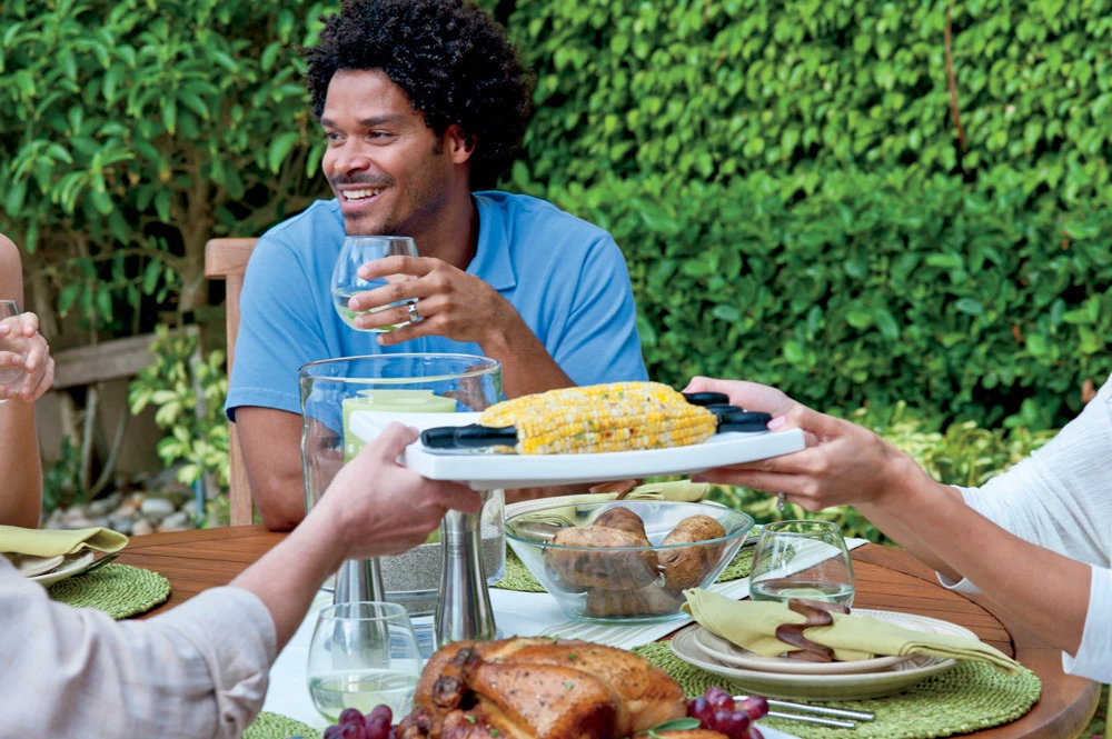 El Set de Pinchos Weber para Mazorcas de Maíz incluye ocho pinchos de gran resistencia con mango de nylon, para que manipular y untarles mantequilla a las mazorcas más grandes sea tan fácil como darles el primer bocado.